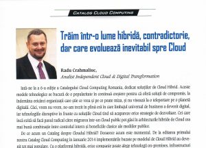 De la editarea primului nostru Catalog Cloud Computing în ianuarie 2014 implementările bazate pe modelul de Cloud Hibrid au devenit tot mai populare. Cu o platformă hibridă, orice companie poate alege tehnologii on-premises, infrastructuri private de Cloud gestionate sau nu, precum și servicii publice de Cloud de la unul sau mai mulți furnizori va suporta nevoia crescută de procesare în orice moment, de oriunde.