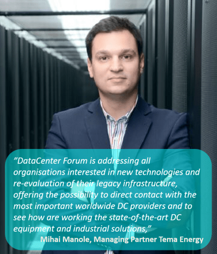 Very interesting was the beginning discussions panel bringing on the Forum podium representative exponents from international data center (DC) institution, local CIO community, and organiser manager: Scott Roots – Business Development Manager at Uptime Institute, Yugo Neumorni – President CIO Council Romania, and Mihai Manole – Managing Partner Tema Energy. ”DataCenter Forum is addressing all organisations interested in new technologies and reevaluation of their legacy infrastructure, offering the possibility to direct contact with the most important worldwide DC providers at and to see how are working the state-of-the-art DC equipment and industrial solutions,” said Mihai Manole in his opening keynote.