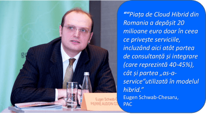 Pentru a avea o imagine cât mai obiectivă și mai cuprinzătoare asupra fenomenului Hybrid Cloud și a nivelului de adopție din România, am solicitat opiniile unor companii specializate în analize și studii de piață. În acest articol veți putea citi care sunt principalele considerente legate de Cloudul hibrid, conform opiniilor lui Eugen Schwab-Chesaru, vicepreședinte pentru Europa Centrală și de Est la PAC (Pierre Audoin Consultants)