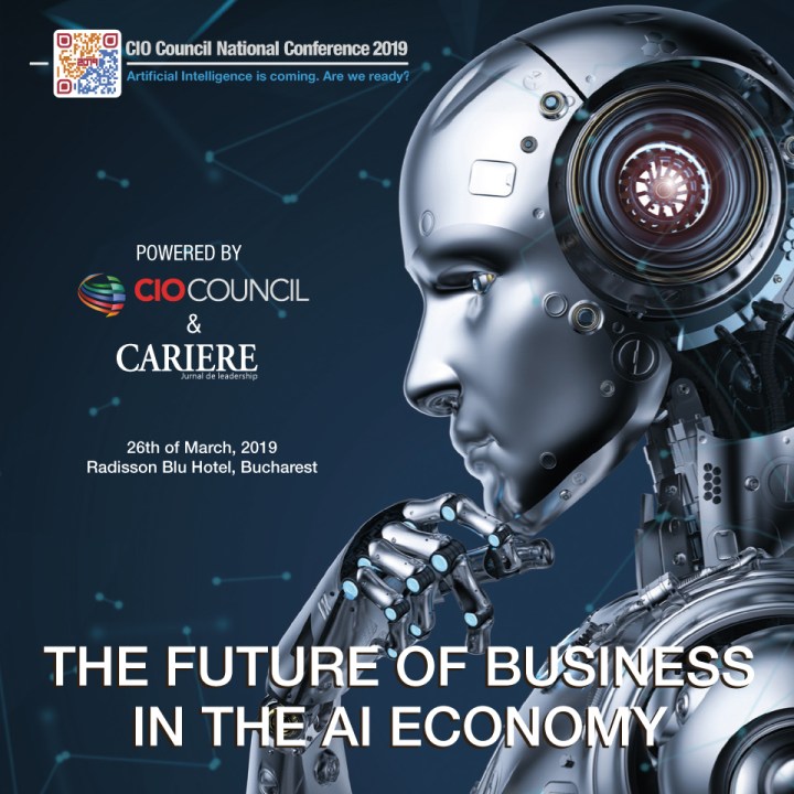 A 7-a ediție a Conferinței Naționale CIO Council Romania ”The Future of Business in the AI Economy” va fi organizată de către Asociația Directorilor de IT și Comunicații din România – “CIO Council” și Revista CARIERE pe data de 26 martie 2019, la Hotel Radisson Blu din București