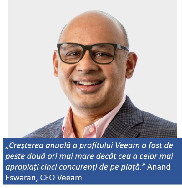 „Datorită acestor performanțe consecvente, Veeam este furnizorul nr. 1 la egalitate cu un alt furnizor la nivel mondial în cea de-a doua jumătate a anului trecut pe piața de recuperare și protecție a datelor conform IDC,” a precizat Anand Eswaran, CEO Veeam din decembrie 2021. „În cel mai recent raport bianual IDC – Software Tracker – pentru a doua jumătate a anului 2021, Veeam a înregistrat cea mai rapidă creștere a profitului pe piața mondială de replicare și protecție a datelor (DR&P) în comparație cu primii cinci furnizori, toți ceilalți furnizori însumați și media generală a pieței. De altfel, creșterea anuală a profitului Veeam a fost de peste două ori mai mare decât cea a celor mai apropiați cinci concurenți de pe piață.”
